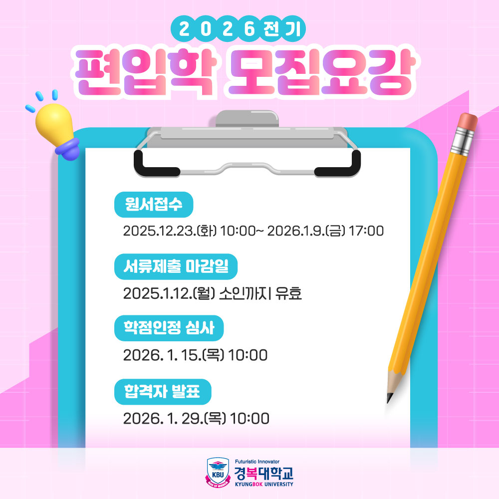 외국인 잠재력을 전문가로, 경복대학교 외국인 외국인 모집요강 전형안내 입시일정 공지사항 입학상담 입학상담 비밀번호는 10∼20자의 영문대소문자, 숫자 및 특수문자 사용, 1∼6까지의 (!, @, #, $, %, ^) 특수문자만 가능합니다. 총 2664개의 게시물이 등록되어 있습니다. 제목 내용 작성자 검색어를 입력하세요 검색 입학상담게시판 목록으로 번호, 상태, 제목, 작성자, 작성일자, 조회수를 제공 번호 제목 상태 작성자 작성일자 조회수 4 등록금 가상계좌 답변완료 안녕하세요 2024.02.07 1 3 예비 답변완료 .. 2024.02.05 1 2 예비번호 답변완료 윤지니 2024.02.05 4 1 등록금 가상계좌 답변완료 01 2024.02.05 4 261262263264265266267 글쓰기