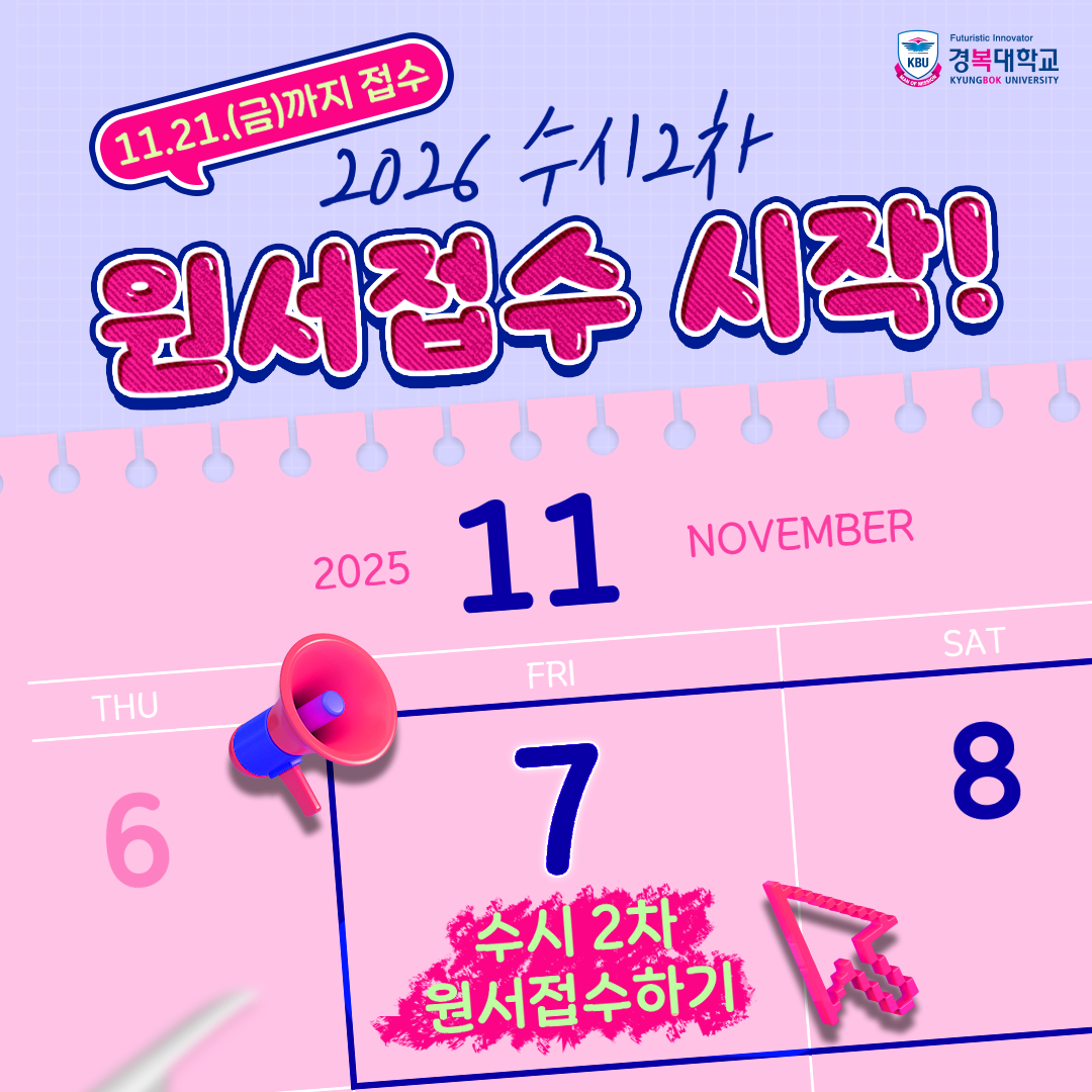수시2차 잠재력을 전문가로, 경복대학교 수시2차 수시2차 모집요강 입시일정 입시결과 원서접수 지원현황 공지사항 입학상담 입시일정 1095년 1096 1097년 전체 01월 02월 03월 04월 05월 06월 07월 08월 09월 10월 11월 12월 월간일정 연간일정 1096년 12월 학사일정 달력으로 일별 일정 제공 일 월 화 수 목 금 토 SUN MON TUE WEN THU FRI SAT 1 2 3 4 5 6 7 8 9 10 11 12 13 14 15 16 17 18 19 20 21 22 23 24 25 26 27 28 29 30 31 상기 일정은 사정에 따라 변경 될 수 있습니다.